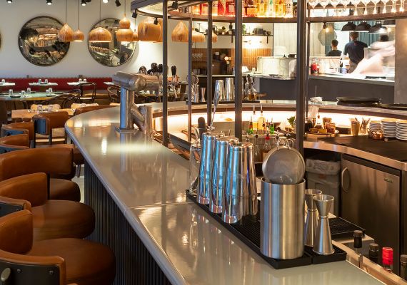 Their largest spot to date, this gorgeous, airy eatery is perched overlooking the redeveloped BBC Television Centre. It’s awash with industrial touches (smooth cement flooring, stools mirroring the Soho branch, a sleek metallic hulk of a standalone lavastone cocktail bar), focused around a bustling open kitchen.