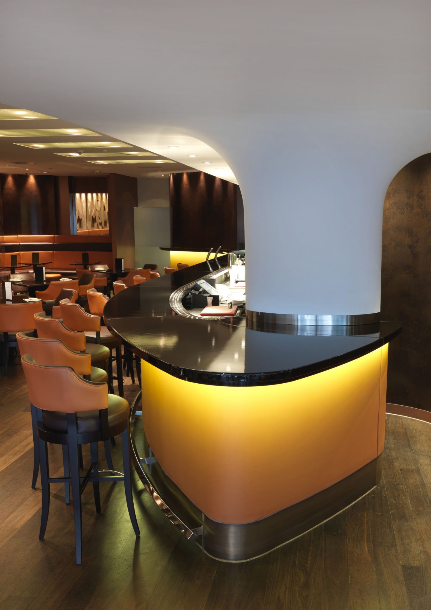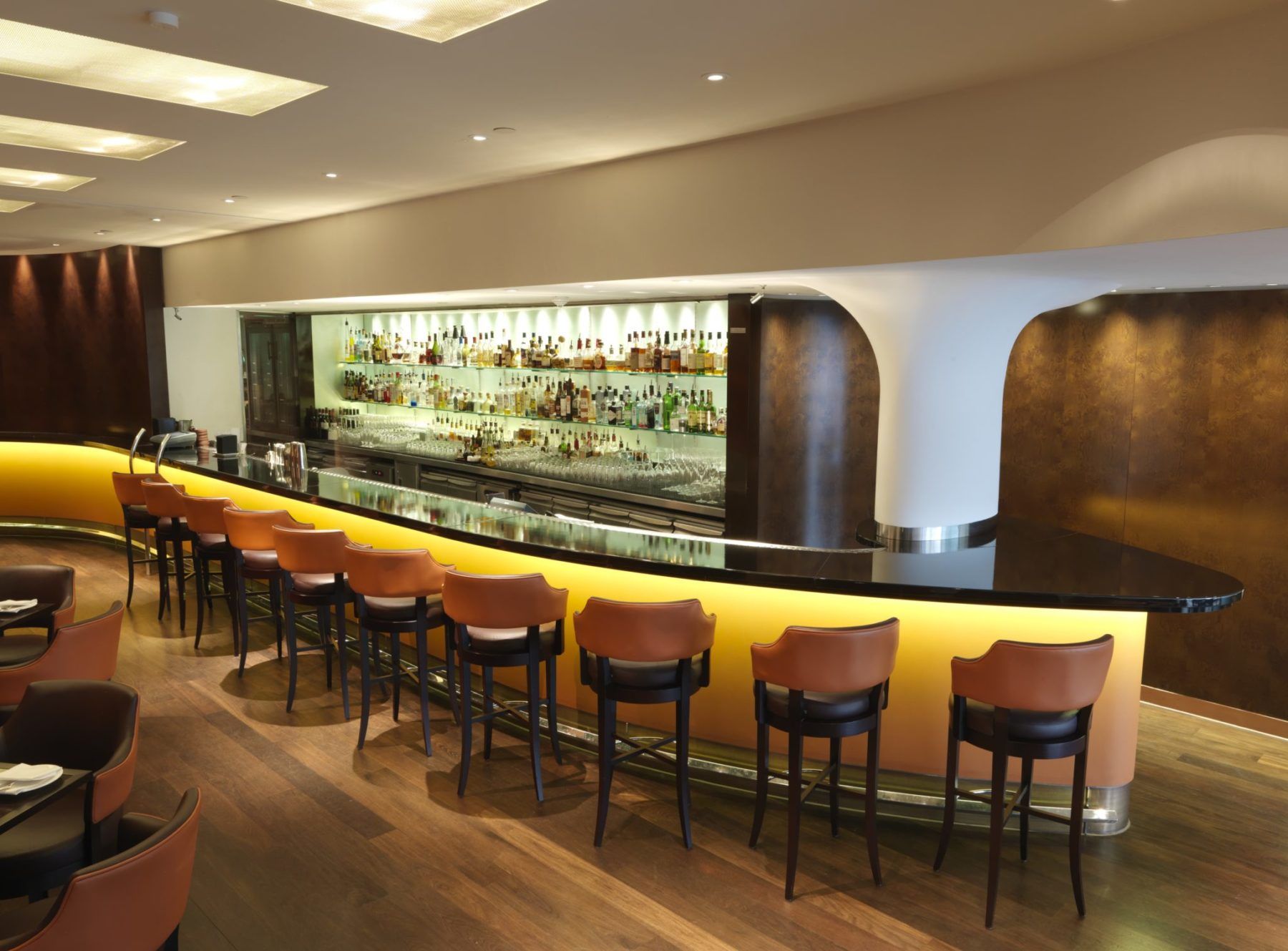 The Met Bar, synonymous with celebrities in the nineties, features glossy black furniture with golden highlights. A classy destination to enjoy a cocktail.