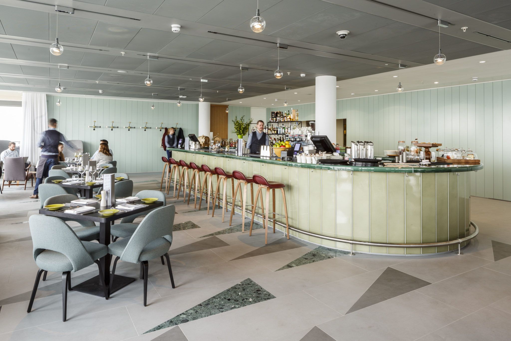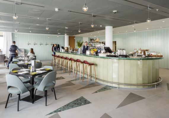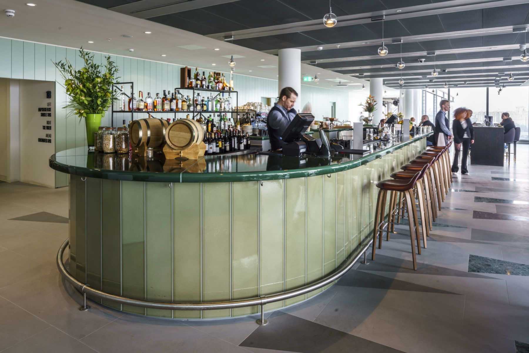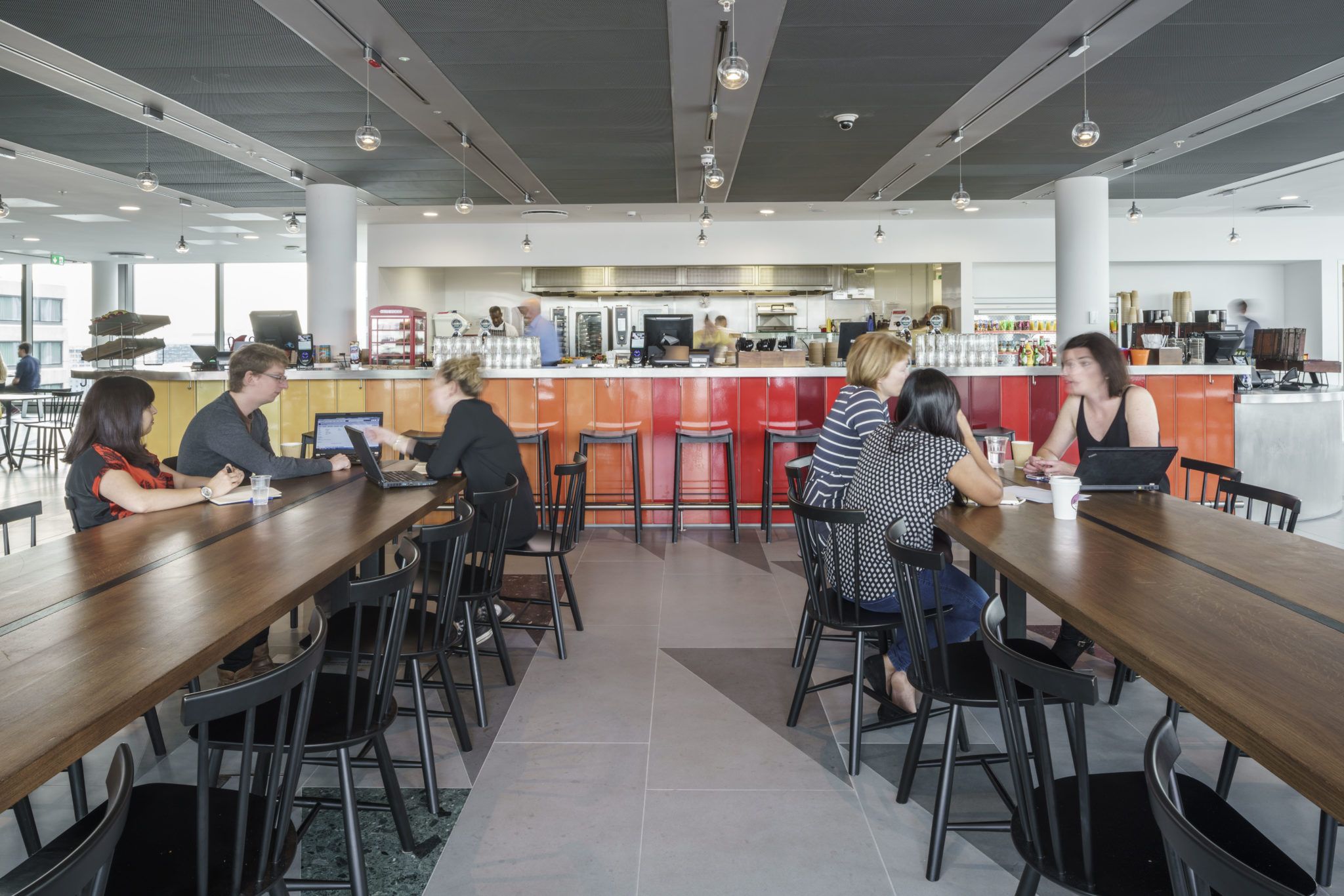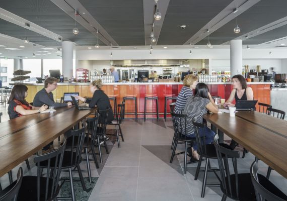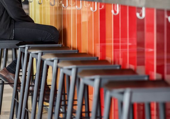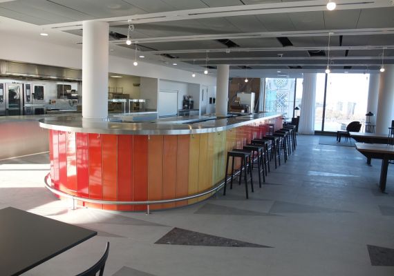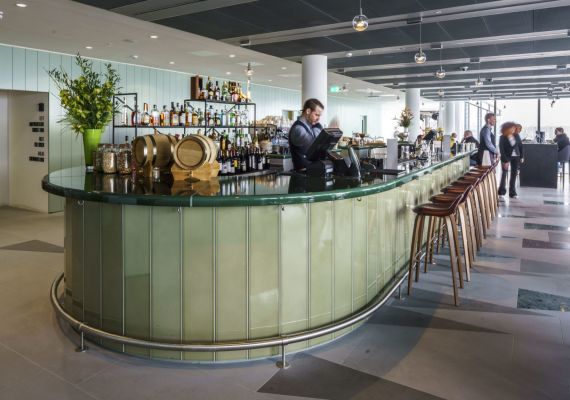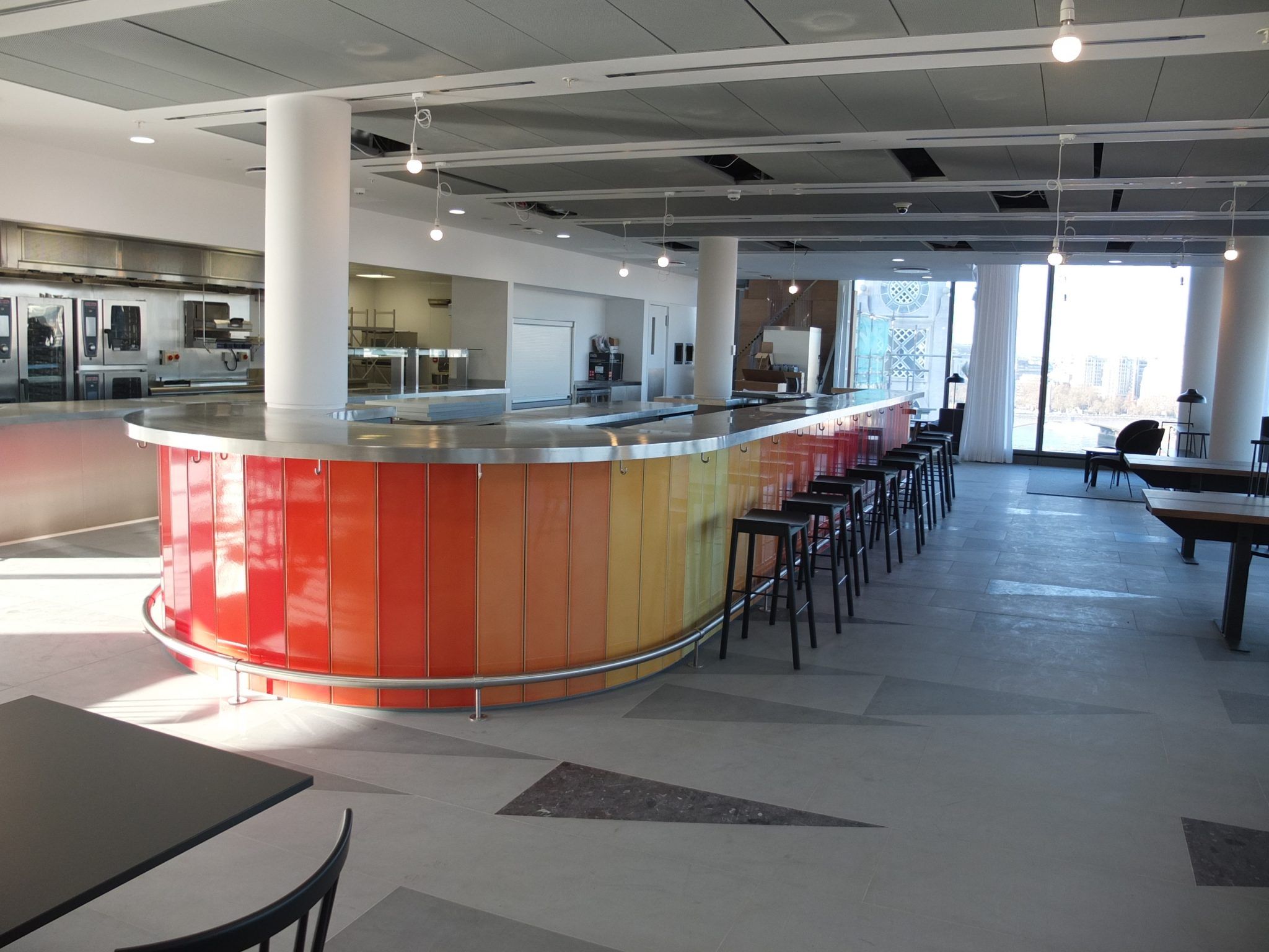 The design staff in this historic London building overlooking the Thames can enjoy the panoramic views from the sunset bar.
