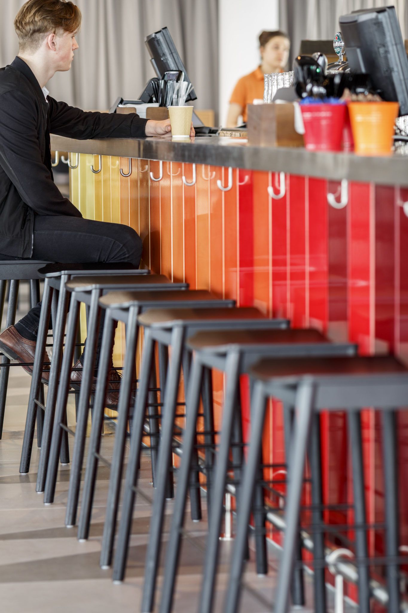 - Colours Used- Green bar ( risers in Tilleul, bar top in Sequoia), red bar (25 bespoke ‘sun set’ colours)