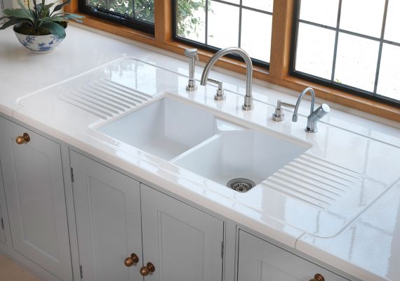 Application- Kitchen Worktop with sink cut out, drainer ribs & drop down water retention area
