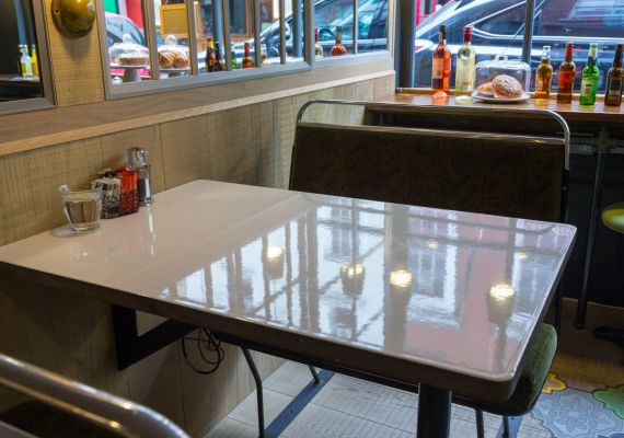 - Application- Café tables with brute edges