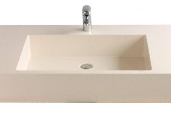Vanity units carved from a single solid block.