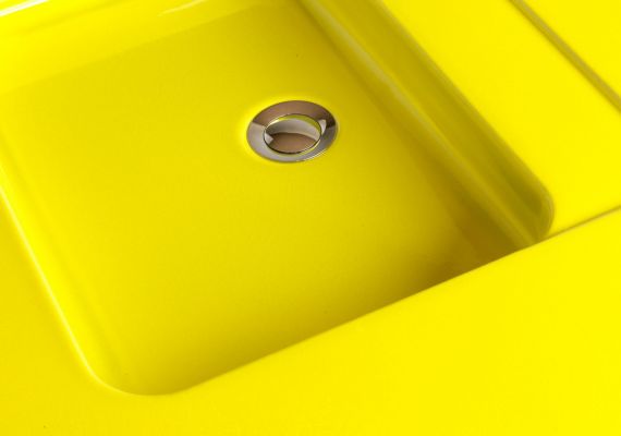 - Colours Used- Azur (blue round vanity), Jaune Magnetic (yellow), Blanc de chine (matt white), Amethyste (purple), Parchemin (matt ivory), Aigue Marine (light blue).